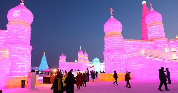 PECHINO, 5 GEN - Il Festival internazionale del ghiaccio di Harbin, nel gelido nordest cinese, stupisce anche quest'anno nella sua 34/ma edizione, tra le sculture colorate a riprodurre la Piazza Rossa di Mosca o il Tempio del Buddha di smeraldo di Bangkok. La più grande iniziativa al mondo del suo genere ha preso il via già in settimana e durerà tre mesi con il picco di visitatori atteso durante la festività del Capodanno cinese, celebrato quest'anno dal 15 al 23 febbraio, e malgrado le temperature stabilmente sotto lo zero, fino a toccare i -20 gradi centigradi. Nell'edizione 2017 si sono avuti 18 milioni di visitatori capaci di generare 4,4 miliardi di dollari di ricavi, secondo i dati dell'ufficio del turismo della città. Un parco dedicato alle opere in ghiaccio, Harbin Ice-Snow World, include oltre 2.000 sculture ricavate dalla lavorazione di 180.000 metri cubi di ghiaccio recuperato da oltre 1.000 addetti dal vicino fiume Songhua. Suggestivo lo spettacolo notturno, alimentato da luci colorate e atmosfere uniche.