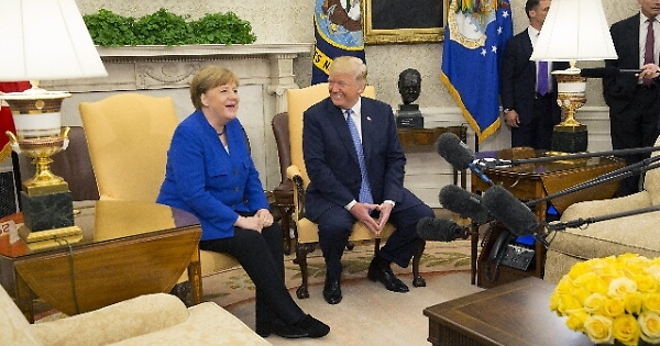 WASHINGTON, 27 APR - "Fra noi un ottimo rapporto dall'inizio, ma qualcuno non lo ha capito. L'importante che lo capiamo noi". Lo ha detto il presidente degli Stati Uniti Donald Trump accogliendo la cancelliera tedesca Angela Merkel nello Studio Ovale e porgendo le sue congratulazioni per la vittoria elettorale. I due leader, dopo i colloqui, terranno una conferenza stampa congiunta. Fra i principali temi sul tavolo i dazi e l'accordo sul nucleare iraniano.
