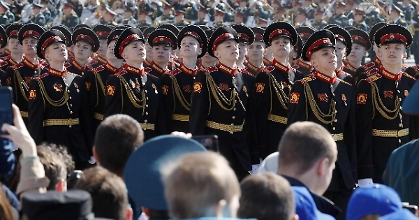 MOSCA, 9 MAG - E' iniziata la solenne parata militare in Piazza Rossa del Giorno della Vittoria (Den Pobedy, in russo). Per celebrare la vittoria sovietica sulle truppe naziste nella seconda guerra mondiale, nota in Russia come Grande Guerra Patriottica, sfileranno davanti alle mura del Cremlino oltre 13.000 militari e 132 mezzi bellici, mentre 74 tra jet ed elicotteri sorvoleranno il centro di Mosca. Anche quest'anno la parata sarà per la Russia di Putin un'occasione per flettere i muscoli e mostrare le sue armi piu' moderne.