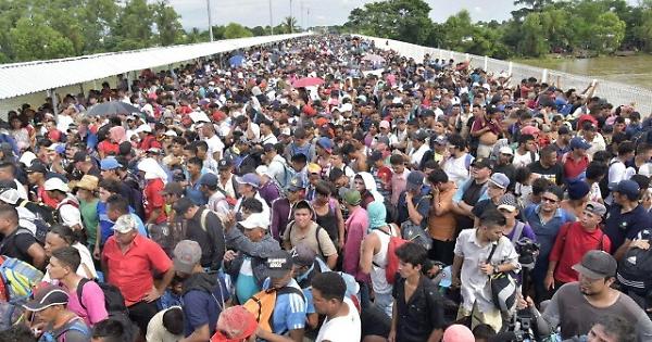 NEW YORK, 22 OTT - La carovana di migranti partita dal Centro America e diretta verso gli Stati Uniti e' cresciuta arrivando ad oltre 7.000 persone. Lo affermano le autorita' guatemalteche e messicane. Questo nonostante le minacce del presidente Usa Donald Trump, che ha promesso di inviare l'esercito per proteggere il confine meridionale tra Usa e Messico. La maggior parte dei migranti proviene dall'Honduras e ora stanno entrando in Messico dalla citta' di frontiera di Ciudad Hidalgo.