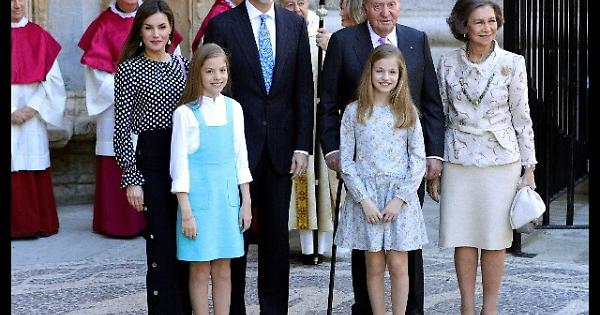 ROMA, 1 APR - I reali di Spagna, Filippo VI e la moglie Letizia con le loro figlie, la principessa Leonor e l'infanta Sofía, hanno partecipato alla messa della domenica di Pasqua nella cattedrale di Maiorca. Con loro anche l'ex sovrano Juan Carlos e la moglie Sofía di Grecia. Al suo ingresso nella cattedrale, la famiglia reale è stata accolta con calore dalla folla al grido 'Viva il re', 'Viva la Spagna', e da tanti turisti curiosi che durante le festività affollano le Baleari. Elegante come sempre Letizia indossava pantaloni neri con bottoni laterali, camicia a pois bianca e nera, borsa rosa e decolléte alte nere. Deliziose le figlie Sofia in scamiciata celeste e Leonor in vestitino colori pastello, entrambe con ballerine grigie con cinturino.