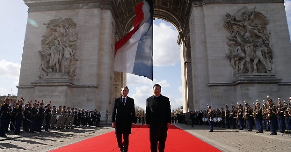 Macron e Xi, omaggio all'arco di Trionfo