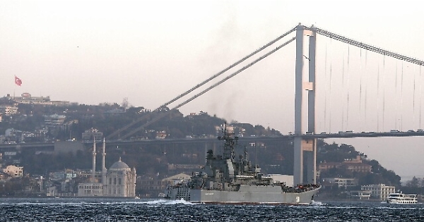 ISTANBUL, 16 APR - La nave militare da sbarco russa Orsk ha attraversato nelle scorse ore lo stretto del Bosforo per dirigersi alla base di Mosca nel porto siriano di Tartus. Lo riferiscono media locali, mostrando alcune immagini dell'imbarcazione pesante in navigazione nei pressi di Istanbul e diretta verso il Mediterraneo orientale. Il mezzo, parte della Flotta russa del Mar Nero, trasporterebbe mezzi corazzati BTR-80, veicoli da combattimento GAZ Tigr e autocarri dell'esercito. Non risultano al momento conferme ufficiali dalla Difesa di Mosca di questo ulteriore rafforzamento delle forniture militari in Siria.