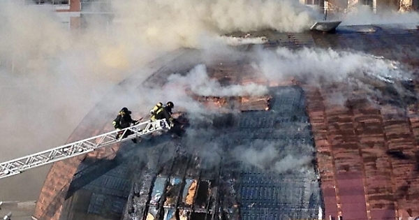 ROMA, 30 NOV - In fiamme il tetto dell'auditorium di via Albergotti, in zona Pineta Sacchetti a Roma. Sul posto i vigili del fuoco con tre squadre. A bruciare, la copertura e la guaina della struttura in ristrutturazione. Al momento non si ha notizia di feriti. E secondo quanto si è appreso, potrebbe essere stato un errore umano a provocare l'incendio. Dalle prime informazioni, sembra che stamattina stessero lavorando alcuni operai alla saldatura della guaina quando ha preso fuoco. Una vasta colonna di fumo si è alzata nel cielo della zona.