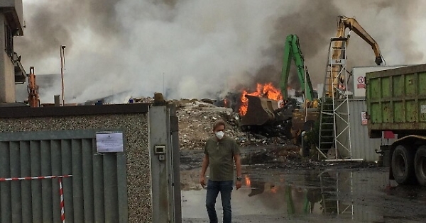 MORTARA (PAVIA), 10 SET - Al quinto giorno di lavoro dei vigili del fuoco ci sono ancora fiamme, oltre al fumo, tra i cumuli di rifiuti speciali ammassati alla ditta "Eredi Bertè" di Mortara. I vigili del fuoco nella notte, continuando l'opera di smassamento della montagna di scarti a cielo aperto, sono riusciti a raggiungere un grande capannone sul retro del deposito, a sua volta pieno di rifiuti interessati dall' incendio, che anzi secondo i primi accertamenti sarebbe partito proprio da lì. La struttura è lesionata e il tetto crollato, per cui non è possibile entrare e lo spegnimento può avvenire soltanto dall'esterno, con potenti getti d'acqua. Ci vorranno ancora giorni per concludere l'intervento. Al momento sono al lavoro quattro squadre di pompieri, di Vigevano, Mortara, Robbio e Pavia, coadiuvati da volontari della Croce Rossa. Sul posto c'è sempre anche il personale dell'Arpa.