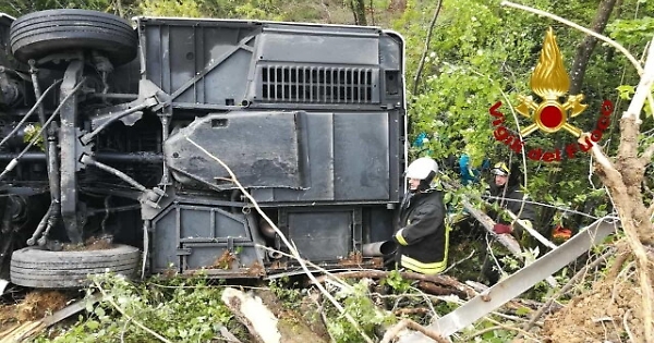 MONTERIGGIONI (SIENA), 22 MAG - Una persona è morta e numerose persone sarebbe rimaste ferite nel ribaltamento di un bus turistico avvenuto intorno alle 9.30 sulla Siena-Firenze all'altezza di Monteriggioni (Siena) in direzione sud. Secondo quanto si apprende a bordo c'era una comitiva di turisti di origine russa. I vigili del fuoco stanno lavorando per estrarre alcune persone rimaste incastrate tra le lamiere del bus finito in una scarpata e adagiato sul fianco destro. Sul posto oltre ai vigili del fuoco, la polizia stradale, il personale Anas e numerosi mezzi del 118. Il raccordo autostradale Siena-Firenze è provvisoriamente chiuso in direzione Siena, con uscita obbligatoria allo svincolo di Monteriggioni. Per cause in corso di accertamento il mezzo sarebbe uscito di strada ribaltandosi.