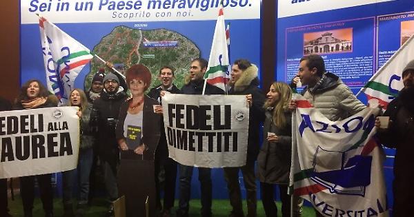 Laurea Fedeli, protesta studenti in A1