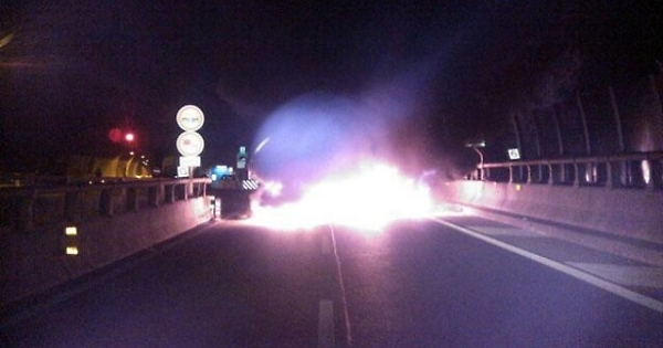 Pneumatici a fuoco, disagi sulla A32