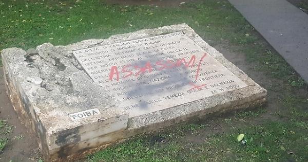 Imbrattato monumento foibe a Cagliari