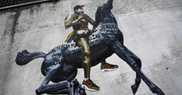 Dl Zan, murales con Fedez sul cavallo Rai davanti sede dell'azienda Tv