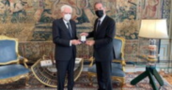 PALERMO - Il presidente della Repubblica, Sergio Mattarella, ha ricevuto nel pomeriggio al Quirinale il governatore della Sicilia Nello Musumeci. Accompagnato dal segretario generale della Regione Maria Mattarella, Musumeci ha voluto fare dono al capo dello Stato della prima copia della medaglia commemorativa del 75mo anniversario dello Statuto siciliano, appositamente commissionata da Palazzo Orleans alla Zecca dello Stato.