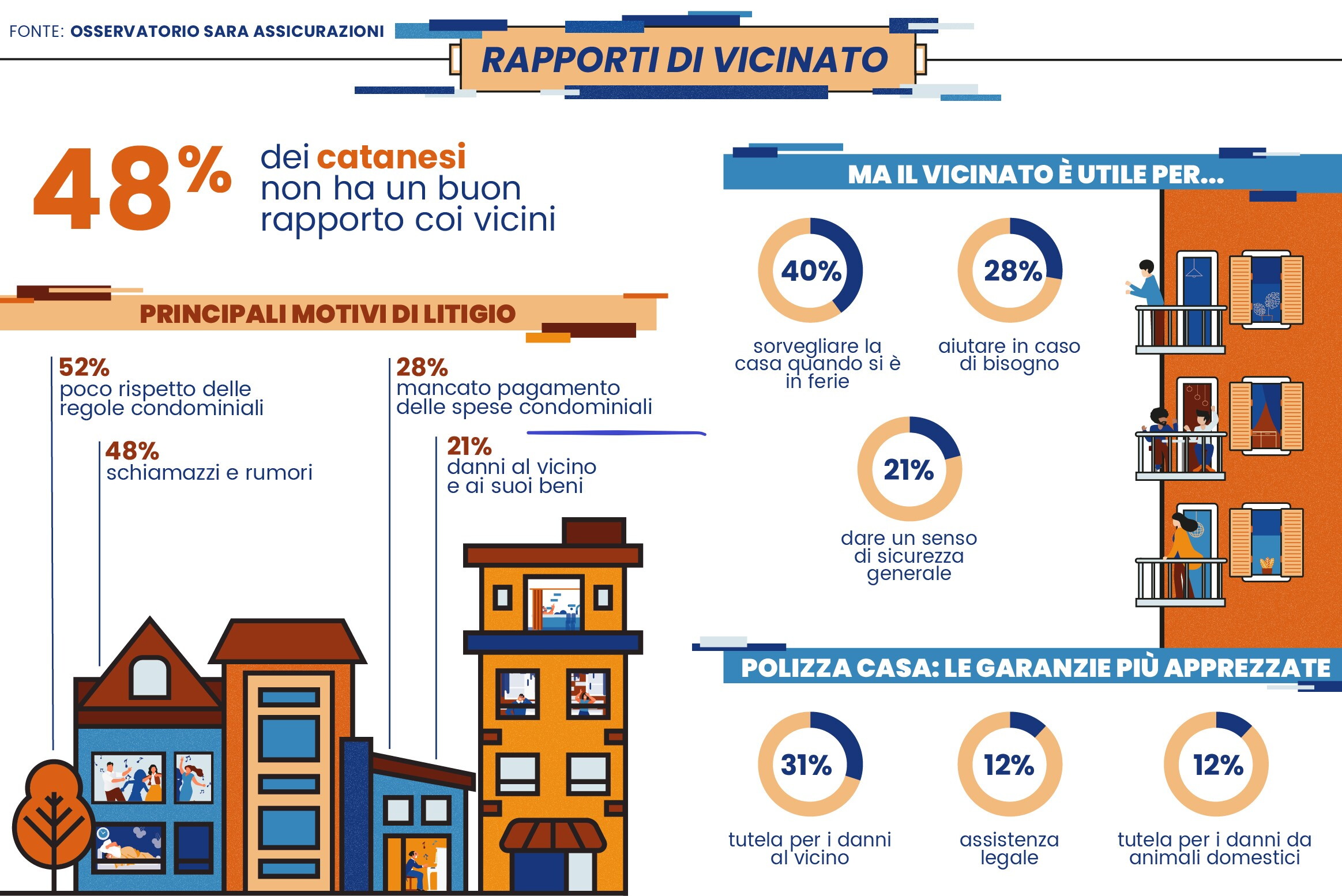 Il 48% dei catanesi non è in buoni rapporti con i vicini di casa, secondo un'indagine della compagnia d'assicurazioni Sara