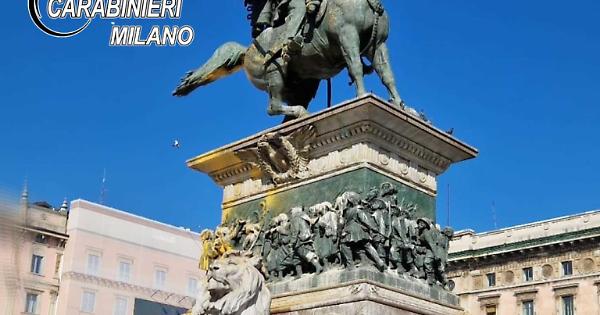 Imbrattano statua in piazza Duomo a Milano, due denunciati
