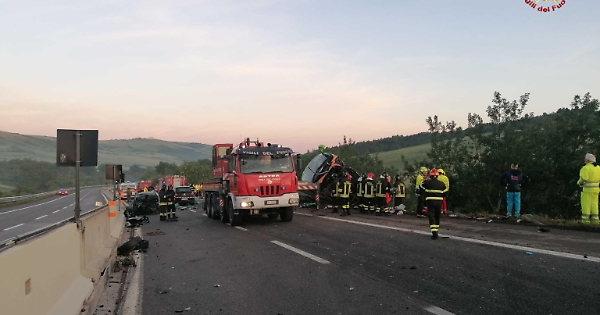 Un morto e 14 feriti: è il bilancio, provvisorio, di un grave incidente stradale nel quale sono rimasti coinvolti un bus con a bordo 38 passeggeri, finito in una scarpata, e 5 auto. La tragedia è avvenuta alle 4 sull'autostrada A16 Napoli-Canosa, in direzione Napoli, all'altezza del comune di Vallesaccarda al km 101. Sul posto sono al lavoro i vigili del fuoco di Grottaminarda e Bisaccia e Avellino con un'autogru. I feriti sono stati trasportati a Avellino, Benevento, Ariano Irpino e altri ospedali. Sul luogo dell'incidente è giunta anche un'eliambulanza. I pompieri stanno sollevando il bus per recuperare eventuali altri passeggeri.