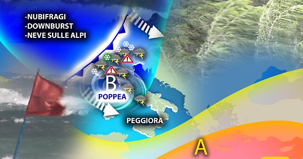 Maltempo in arrivo su tutta l'Italia, portato dal ciclone in arrivo dal Nord Europa e che nella notte di domenica dovrebbe raggiungere il Mar Ligure. Lo indicano le previsioni del sito iLMeteo.it, secondo il quale lo scontro fra l'aria fredda in arrivo e quella calda preesistente "potrebbe assumere sul Mediterraneo, caratteristiche simil-tropicali e quindi di uragano", come osserva il fondatore del sito, Antonio Sanò. Il riferimento è a un uragano tipico del Mediterraneo, chiamato Medicane. Secondo il sito, l'ondata di maltempo potrà portare fenomeni "in alcuni casi estremi, come intense grandinate e presenza di downburst", ossia il "fenomeno meteorologico che consiste in forti raffiche di vento discensionali con moto orizzontale in uscita dal fronte avanzante del temporale". Per questo, osserva Sanò, "su tutte le zone e città in cui scoppierà un forte temporale potrà esserci il rischio di una forte grandinata. Piemonte, Lombardia, Liguria, Trentino Alto Adige (nelle giornate di domenica e lunedì), Veneto, Friuli Venezia Giulia, Toscana e Lazio (nelle giornate di lunedì e martedì) sono le regioni maggiormente a rischio di grandine grossa". Con il ciclone è in arrivo anche aria fredda, con temperature più basse e possibilità di neve "anche sotto i 2.000 metri". Nel dettaglio Domenica 27: a Nord intenso maltempo a Nord-Ovest; al Centro soleggiato e caldo; al Sud sole e caldo intenso. Lunedì 28: a Nord forte maltempo su tutte le regioni; al Centro maltempo su Toscana, Lazio e Umbria; al Sud peggioramento in Campania. Mercoledì 29; a Nord ultime piogge al Nord-Est; al Centro maltempo: a Sud temporali su Campania e Calabria.