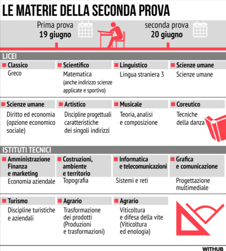 Greco al Classico, matematica allo Scientifico: si va delineando l’esame di Maturità che terrà impegnati circa 500 mila studenti dell’ultimo anno delle superiori a partire dal 19 giugno. Oggi il ministro dell’Istruzione, Giuseppe Valditara, ha firmato il decreto in cui si stabiliscono le materie della seconda prova scritta: i ragazzi del liceo Classico, dovranno dunque affrontare il greco (lo scorso anno era capitato il latino), quelli dello Scientifico la matematica, come lo scorso anno; viene proposta la terza lingua di studio al Linguistico, Scienze umane per il Liceo delle Scienze umane. Agli Istituti tecnici, Economia aziendale per l’indirizzo «Amministrazione, Finanza e Marketing» e Discipline turistiche e aziendali per l’indirizzo Turismo; Topografia per l’indirizzo «Costruzioni, Ambiente e Territorio»; Sistemi e reti per entrambe le articolazioni dell’indirizzo "Informatica e Telecomunicazioni"; Progettazione multimediale nell’indirizzo «Grafica e comunicazione»; Trasformazione dei prodotti per l’articolazione «Produzioni e trasformazioni» degli Istituti agrari.