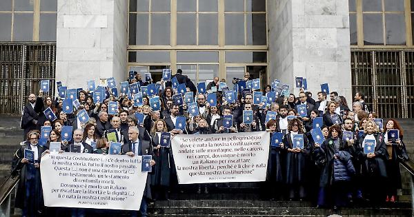 Tanti giudici e pm milanesi e alcuni procuratori della sede del distretto della corte d'appello si sono schierati compatti sabato mattina sulla scalinata davanti all'ingresso principale di Palazzo di giustizia di Milano con addosso la toga per protestare contro la riforma costituzionale della giustizia che prevede la separazione delle carriere. Più tardi, durante la cerimonia di inaugurazione dell'Anno giudiziario, come indicato dalla Anm nazionale nei giorni scorsi, i magistrati si sono alzati e hanno lasciato l'Aula magna quando ha preso la parola il rappresentante del Governo.