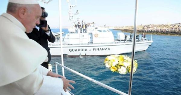 Prima visita apostolica del pontificato, scelta fortemente simbolica. Francesco visitò l’isola per incontrare migranti e rendere omaggio alle vittime dei naufragi nel Mediterraneo. Celebrò la Messa e gettò in mare una corona di fiori in memoria dei morti.