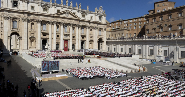 Piazza San Pietro che già dall'alba ha cominciato a popolarsi di fedeli, è stata chiusa quando ha raggiunto la capienza massima di 50 mila persone con l'afflusso dei fedeli che è continuato in via della Conciliazione dove si trovano 100mila persone. E' la stima che emerge dal Centro per la Gestione della Sicurezza dell'evento della Questura di Roma.
