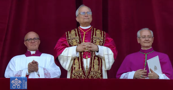 La scelta del nome del nuovo Papa riprende la figura di Leone XIII, il Papa della Rerum Novarum, fondatore della Dottrina sociale della Chiesa. La prima preghiera di Papa Prevost è «per la pace del mondo». Ha ricordato che oggi è la Madonna di Pompei e ha recitato una Ave Maria con i fedeli in