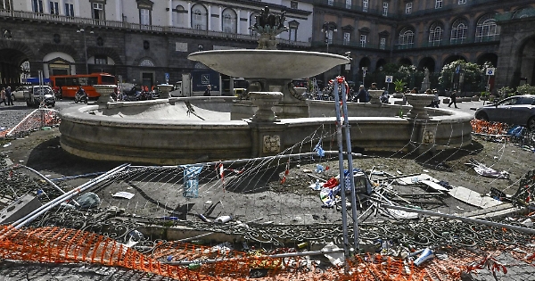 Dopo la notte di festa, a Napoli si fa la conta dei danni e dei feriti: trentanove quelli che si sono fatti refertare - riferisce l'associazione Nessuno Tocchi Ippocrate - negli ospedali Vecchio Pellegrini e San Paolo, molti di loro per le ustioni riportate a causa dell'utilizzo di fuochi d'artificio o a seguito di colluttazione. Tra loro anche un cittadino belga di 27 anni accoltellato alla gamba mentre si trovava a via Poerio da due individui in sella a uno scooter che, senza alcun apparente motivo, dopo averlo avvicinato lo hanno colpito con un fendente alla coscia posteriore sinistra. La vittima è stata dimessa con una prognosi di dieci giorni. Il dato dei feriti è relativo ai soli due ospedali citati e come tale va inteso come parziale. "Basti pensare che a Capodanno i feriti furono trentasei" sottolinea il presidente dell'associazione Nessuno tocchi Ippocrate Manuel Ruggiero. Danneggiata a piazza Trieste e Trento la fontana del Carciofo presa d'assalto dai tifosi nonostante le reti metalliche di protezione apposte dal Comune. Divelta la ringhiera in ferro che cingeva la fontana.