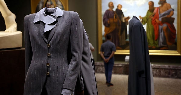 Più di centoventi creazioni ripercorrono lo stile Giorgio Armani nella galleria d’arte: doveva essere una festa e invece è una celebrazione nostalgica. La storia dell’arte incontra quella della moda invitando il visitatore a lasciarsi sorprendere da contrasti cromatici e materici. La selezione proviene da Armani/Archivio, che preserva e valorizza la visione di Giorgio Armani: un dizionario concettuale per raccontare e definire cinquant’anni di creatività, coerenza ed evoluzione, evidenziando il ruolo della moda nella costruzione e nella trasformazione degli immaginari estetici e culturali.