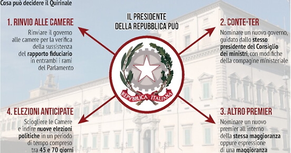 Una decisione su come affrontare la crisi aperta da Iv Conte - se dimettersi per aprire il tentativo di un nuovo governo o andare in Parlamento a verificare la sua maggioranza - la deve mettere sul tavolo già nelle prossime ore, anche perché è lo stesso presidente Mattarella ad averlo invitato ad una soluzione della crisi in tempi brevi.