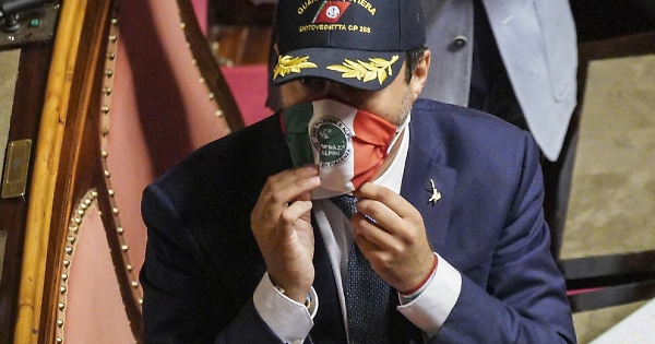 Al termine del suo intervento in aula del Senato il leader della Lega Matteo Salvini ringrazia i senatori leghisti e più in generale dell’opposizione che lo applaudono e, prima di sedersi al suo posto, prende un cappellino della guardia costiera e lo indossa. E’ lo stesso ex ministro a pubblicare le immagini sul suo profilo twitter.