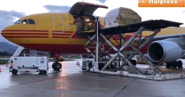 ROMA - E' giunto all'aeroporto di Ciampino un aereo con migliaia di dosi di vaccini anti Covid-19 che saranno scortati a bordo di vari mezzi in diverse parti del Lazio e del Centro Italia. Una scena alla quale abbiamo già assistito in questi giorni e che si ripeterà molte volte nelle settimane a seguire. Sul posto un ampio dispiegamento di forze di polizia, per garantirne il trasporto in sicurezza.