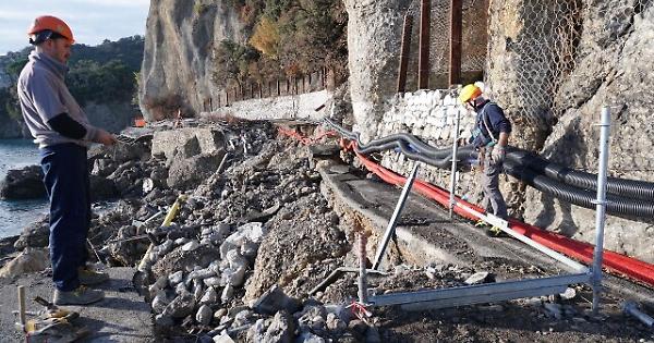 SANTA MARGHERITA LIGURE (GENOVA), 26 NOV - Con un leggero ritardo rispetto al previsto, questa mattina alle 9:30 è iniziato il montaggio della passerella pedonale che collegherà Santa Margherita Ligure con Paraggi e Portofino, isolate dal 29 ottobre scorso quando una violenta mareggiata ha distrutto parte della strada provinciale 227. Il camion ha scaricato i moduli che completeranno la passerella alcuni dei quali dovranno essere realizzati in un secondo momento e su misura nelle parti delle curve. I lavori sono a cura della Euroedile Srl che confermano la consegna del cantiere al 10 dicembre. La passerella sarà lunga 120 metri e larga 1.50 metri e consentirà "il passaggio di biciclette, passeggini e carrozzine grazie ad apposite rampe". Intanto altre ditte stanno operando sul tracciato della provinciale per consolidarla e ripristinarla nei suoi punti danneggiati.