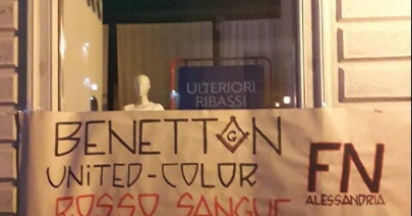 ALESSANDRIA, 19 AGO - Striscione di Forza Nuova contro Benetton, ad Alessandria, per il crollo di Genova del viadotto di Genova. I militanti del gruppo di estrema destra hanno appeso su un punto vendita cittadino della catena di abbigliamento un manifesto con la scritta "Benetton United color rosso sangue". "Rosso sangue - spiega Forza Nuova - è il grido di dolore per ogni singola vittima incolpevole. Chiediamo, a gran voce, che i responsabili di incuria e negligenza - fattori determinanti nella tragedia - individuati nella famiglia Benetton, quali gestori e quindi incaricati, da un passato governo, di detenere la concessione della rete autostradale, assumano le evidenti responsabilità, senza giustificazione alcuna né attingendo alla solita pratica dello scaricabarile. Questa tragedia si poteva e, ancor più, si doveva evitare". Da Forza Nuova l'appello a boicottare il marchio per "rendere giustizia alle vittime".
