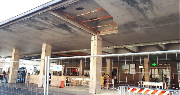 FIRENZE, 3 OTT - Un camion ha urtato l'impalcatura installata a consolidamento della pensilina esterna della stazione Fs di Santa Maria Novella a Firenze, che già era stata interessata da un crollo di calcinacci nel luglio scorso. L'urto di stamani, spiega la polizia, ha provocato il crollo dell'impalcatura e il distacco di materiali dalla pensilina stessa. L'episodio è accaduto intorno alle 5. Nessuna persona è rimasta ferita. I primi a intervenire sono stati gli agenti della polizia ferroviaria. Sul posto anche la municipale.