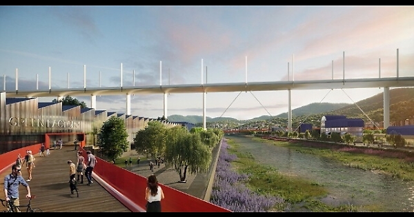 GENOVA, 3 OTT - "Il futuro parco sotto il ponte di Genova sarà il primo quartiere di questa vastità completamente carbon neutral, autosufficiente da un punto di vista energetico". Così Stefano Boeri, l'architetto che insieme ad altri studi come Metrogramma e Inside Outside ha vinto il bando per la progettazione complessiva del masterplan Valpolcevera lanciato dal Comune di Genova. Quasi 50 ettari sotto il viadotto saranno percorsi da un cerchio di acciaio verniciato di rosso lungo 1.570 metri, che correrà a un'altezza da 5 a 20 metri, passando attraverso aree per lo sport, giardini botanici, una "green factory" ossia un campus per aziende innovative. Il cerchio culminerà in una "torre del vento" alta 120 metri. Tutte le strutture avranno sistemi di produzione di energia rinnovabile che sarà stoccata in 2 centri di raccolta, uno dei quali sarà il gasometro in zona Colisa, che sarà recuperato. Il parco sarà disegnato come una serie di fasce parallele ognuna con diverse varietà di fiori e piante.