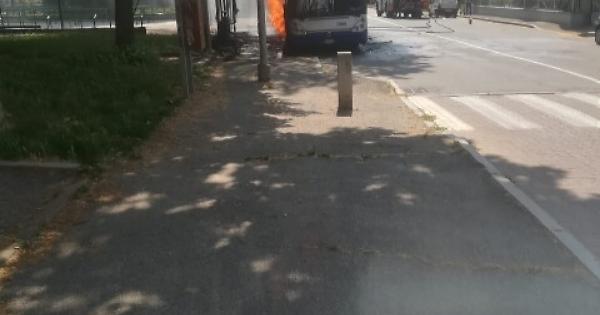 Bus in fiamme, ferito vigile del fuoco