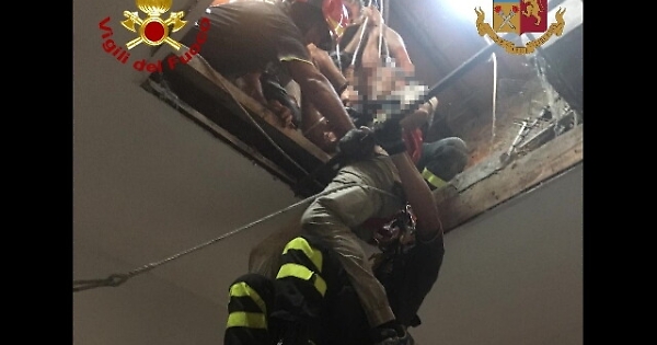 LUCCA, 31 LUG - Un operaio precipitato da un tetto attraverso un lucernario e rimasto appeso per un braccio a diversi metri da terra è stato salvato da polizia e vigili del fuoco. E' accaduto questa mattina alle 9 nei pressi degli 'Ex Macelli' a pochi metri dalle mura di Lucca. L'uomo, colto di sorpresa dalla rottura del lucernaio, è caduto nel vuoto perche' ha trovato sotto di lui l'apertura del solaio sopra la tromba di tre piani di scale: mentre cadeva è riuscito ad aggrapparsi con un braccio all'argine dell'apertura. Gli altri operai che lavoravano con lui hanno provato inutilmente a trarlo in salvo. Dopo pochi minuti sono arrivate le volanti della polizia e dopo pochi istanti i pompieri. Gli agenti sono riusciti a stabilizzare provvisoriamente l'operaio che penzolava nel vuoto grazie ad una corda e mettendo sotto la punta dei suoi piedi una scala di fortuna. I vigili del fuoco sono riusciti a mettere in campo l'autoscala come punto di ancoraggio per calarsi nel cavedio e mettere definitivamente in salvo l'operaio.