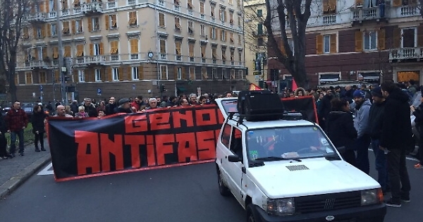 GENOVA, 20 GEN - Situazione tranquilla in piazza Alimonda dove circa 300 manifestanti antifascisti hanno dato vita a un presidio dietro allo striscione 'Genova antifascista', manifestazione che avviene in contemporanea alla 'festa del tesseramento' che si tiene nella sede di CasaPound. Gli antifascisti, cantando 'Bella ciao', distribuiscono volantini con lo slogan 'se toccano uno di noi toccano tutti' facendo riferimento all'accoltellamento avvenuto venerdì scorso ai danni di un antifascista nella zona di piazza Tommaseo. "Rovineremo la festa a CasaPound perché non c'è nessuno spazio per questa feccia" hanno spiegato gli antifascisti. Intanto, mentre dentro la sede di CasaPound si trovano una cinquantina di attivisti, un cordone di polizia tiene divisi i manifestanti da via Montevideo dove si trova la sede dei neofascisti.