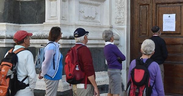 FIRENZE, 20 OTT - Un giglio davanti al portone chiuso della basilica di Santa Croce, e un cartello affisso con un messaggio in italiano e in inglese: "complesso di Santa Croce chiuso per lutto". Appare così, all'indomani della tragedia in cui ha perso la vita il turista spagnolo Daniel Testor Schnell, 52 anni, ucciso da un frammento di capitello precipitato dal soffitto mentre visitava la basilica a Firenze, il complesso monumentale. Intanto gruppi di turisti, incuriositi si avvicinano al portone per leggere. "Attoniti per quanto accaduto la Presidente, il Consiglio di amministrazione, la Direzione e tutto lo staff dell'Opera di Santa Croce esprimono il loro più profondo cordoglio ai parenti della vittima", si legge nel cartello. C'è chi scatta foto al giglio e al cartello, chi chiede informazioni per capire cosa sia successo, perchè la chiesa sia sbarrata. Come Paul e Joan, turisti inglesi: "What's happened?', chiedono aggirandosi un po' smarriti sul sagrato. "Oh my god", scuotono la testa, apprendendo della tragedia.