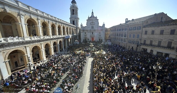 LORETO (ANCONA), 25 MAR - Papa Francesco ha celebrato la messa all'interno della Santa Casa di Loreto, che la tradizione vuole essere la casa di Nazareth. Si tratta di un evento che non avveniva più da 162 anni: l'ultimo a celebrarvi la messa era stato Pio IX nel 1857. Il pontefice, al termine della messa, ha firmato l'esortazione post-sinodale dedicata ai giovani. Ha vergato la sua sigla sul documento appoggiato sull'altare dinanzi all'immagine della "Madonna nera" venerata da milioni di pellegrini. Il Papa, sempre all'interno della Casa che la tradizione vuole essere quella di Nazareth, ha poi consegnato il documento, che sarà pubblicato nei prossimi giorni, all'arcivescovo delegato di Loreto, mons. Fabio Dal Cin. Quindi si è diretto all'incontro con gli ammalati nella basilica e poi a quello con la comunità dei Cappuccini all'interno della sagrestia.