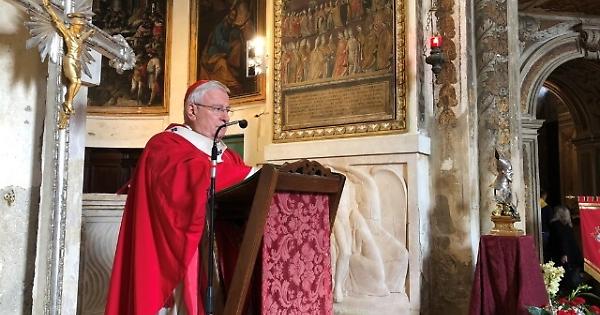 PERUGIA, 11 NOV - "La città è un patrimonio inestimabile, la cui protezione e custodia è dovere di tutti. L'esempio ci viene dal nostro Santo patrono, il vescovo Ercolano, che fu uno dei maggiori artefici della difesa di Perugia assediata dai Goti di Totila": così il cardinale Gualtiero Bassetti, arcivescovo del capoluogo umbro, nell'omelia della celebrazione eucaristica dedicata al vescovo e martire, patrono della città e dell'Università. Celebrata nella chiesa a lui intitolata gremita di fedeli. "Il martirio di Ercolano - ha detto il cardinale Bassetti - ci ricorda che la martiria, cioè la testimonianza di Cristo mediante il proprio sangue, oggi, forse ancora più di ieri, è fonte perenne di vitalità della Chiesa". Al termine della celebrazione è stato donato dall'Amministrazione comunale il cero votivo acceso davanti alle reliquie di sant'Ercolano.