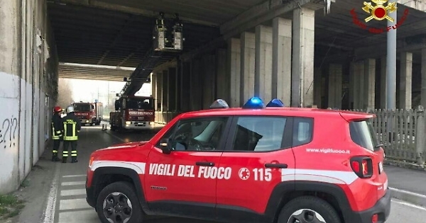 PADOVA, 26 FEB - Un cavalcavia sopra al quale transitano l'autostrada A4 e la linea ferroviaria è stato chiuso precauzionalmente al traffico oggi a Padova, nella parte sottostante adibita al traffico locale, dopo che dalle travature del manufatto erano cadute alcune parti di cemento. L'ispezione dei vigili del fuoco e dei tecnici dell'autostrada e di Rete Ferroviaria Italiana, ha consentito di accertare che si trattava di parti scrostate superficiali, e non c'era alcun allarme sulla tenuta statica del cavalcavia. Le squadre dei pompieri hanno rimosso con un'autoscala tutte le parti scrostate o in procinto di cadere, procedendo poi ad una accurata ispezione della struttura. Per motivi precauzionali è stata decisa la chiusura temporanea del tunnel al traffico veicolare. La prossima notte personale di Rfi effettuerà un controllo della sommità del soffitto del cavalcavia, nella parte di transito della linea ferrata per la rimozione di eventuali parti superficiali pericolanti.