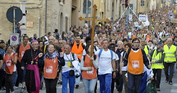 LORETO (ANCONA), 10 GIU - Sono circa 100 mila, secondo gli organizzatori, i partecipanti al 40/o Pellegrinaggio a piedi Macerata-Loreto arrivati al santuario mariano stamane, dopo un percorso di 30 km. I primi fedeli sono spuntati intorno alle 6:30, poi una fiumana di gente che ha occupato l'intera sede stradale, fino alle 8:20 circa. Ieri i pellegrini hanno ricevuto una telefonata da papa Francesco prima della partenza dallo stadio Helvia Recina. "A me piace quando vedo giovani coraggiosi che si mettono in cammino per andare tutta una notte - ha detto -. La vita è un cammino, sempre avanti cercando la felicità per noi e per gli altri. Ma la felicità non si compra al supermercato, viene soltanto dall'amare e nel lasciarsi amare". Ieri sera anche la testimonianza di un 15enne nigeriano, fuggito dal sua Paese dopo la morte dei genitori e ora accolto nel Palermitano. Stamane ad accogliere i fedeli sul sagrato della Santa Casa il card. Marc Ouellet, l'arcivescovo di Loreto Fabio Dal Cin e altri prelati.