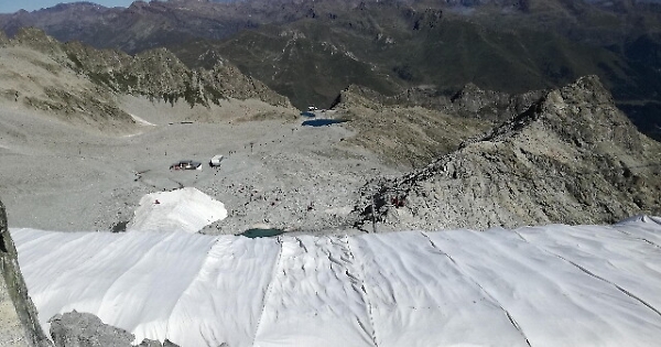 ROMA, 6 SET - L'inverno si avvicina, e il ghiacciaio Presena si toglie la maxi coperta termica da 100mila metri quadri che lo protegge dal caldo estivo per accogliere le prime nevicate. Come ogni anno a settembre in questo periodo vengono rimossi i teli geotessili posizionati a giugno sul ghiacciaio del consorzio Pontedilegno-Tonale . La copertura arriva fino alla cabinovia Presena, alla partenza della pista da sci, a 3.000 metri; è formata da teli larghi 5 metri e lunghi 70, cuciti assieme e non più termosaldati, come accadeva in precedenza. Quando è ora di rimuoverli, il filo viene sfilato e i teli arrotolati con l'ausilio dei gatti delle nevi, e poi riposti in un deposito. Utilizzando questa tecnica, lo strato di ghiaccio di circa 2 metri di altezza è salvo. I lavori di svestizione del ghiacciaio proseguiranno per tutto il mese di settembre. Il progetto è stato avviato nel 2008 in base a un accordo tra la Provincia autonoma di Trento e della Carosello, società che fa parte del Consorzio Pontedilegno-Tonale.