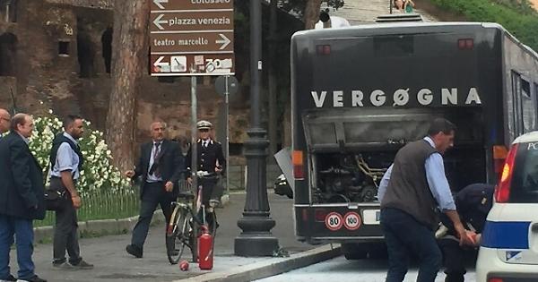 Principio incendio su bus in centro Roma