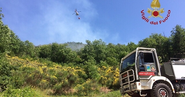 MACERATA, 29 GIU - Brucia ancora il bosco di Fiuminata, in località Costa (Macerata) con squadre dei vigili del fuoco impegnate da almeno 24 ore. Ieri le fiamme erano divampate in mattinata e avevano distrutto circa nove ettari di bosco. L'incendio era stato domato ieri sera ma oggi le fiamme sono divampate nuovamente. Per spegnerle sono impegnati due canadair provenienti dalla base di Ciampino mentre tre squadre a terra dei pompieri si occupano della salvaguardia dei centri abitati.