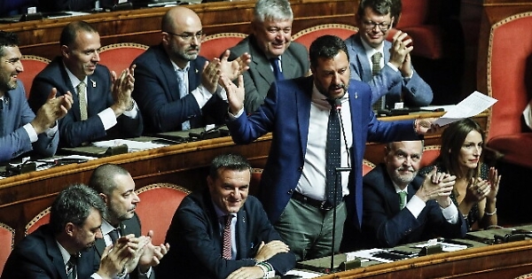 ROMA, 13 AGO - "Sono arrivate alcune proposte, le raccolgo: ho sentito l'amico e collega Luigi Di Maio più di una volta ribadire in questi giorni 'votiamo il taglio di 345 parlamentari e poi andiamo subito al voto'. Prendo e rilancio: tagliamo i parlamentari la prossima settimana e poi andiamo subito al voto". Cos' Matteo Salvini in Aula al Senato. Domani i capigruppo della Lega alla Camera voteranno "per anticipare il taglio dei parlamentari, si chiude in bellezza e poi per dignità onestà e coerenza subito al voto".