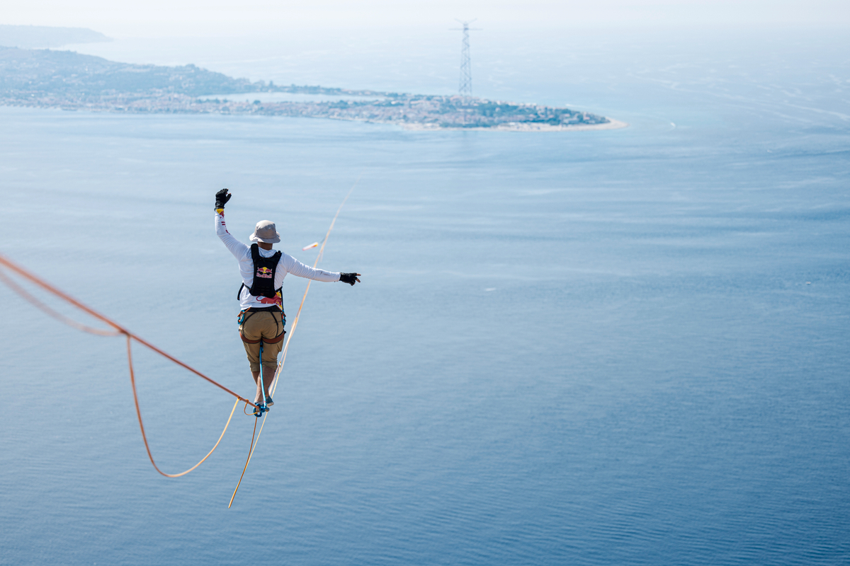 Cambiare la storia ed entrare nelle leggenda dello sport. L'atleta Red Bull Jaan Roose, partito stamattina alle 8.45 dal pilone calabro di Santa Trada a Villa San Giovanni, dopo 1h42' ha già superato 2 dei 3,6 km che dividono la Calabria dalla Sicilia su una slackline di soli 1,9 cm di larghezza, sospesa a 200 metri sul livello del mare. Stamatttina Jaan alle 8,30, è salito sul pilone di Santa Trada (Villa San Giovanni) sul versante calabrese ad un’altezza di 265 metri (misura superiore al più alto grattacielo italiano) e ha iniziato a sistemare i suoi ganci e assicurarsi del preciso assetto.