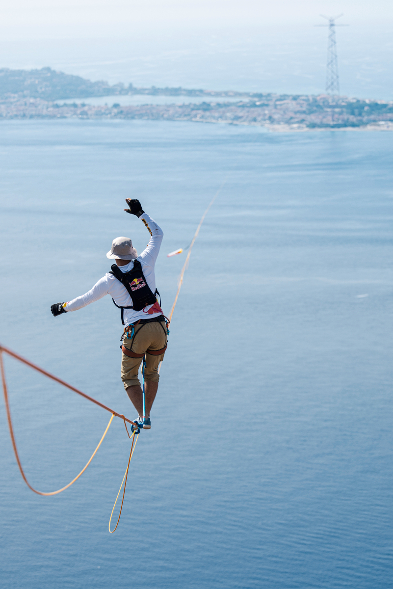 Una straordinaria impresa cominciata alle 8,45 dal pilone calabrese di Santa Trada a Villa San Giovanni che si è conclusa dopo 2h56'32" e una caduta dal filo a pochi metri dal traguardo posto nel pilone siciliano di Torre Faro a Messina, unendo idealmente per la prima volta nella storia la Calabria alla Sicilia. Per la prima volta nella storia un uomo ha passeggiato su un filo sullo Stretto di Messina, scrivendo un nuovo capitolo leggendario della storia dello slackling e dello sport mondiale.