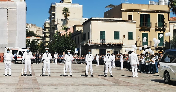 MILAZZO (Messina) - «Siamo attoniti, sconvolti e ci sentiamo stretti dalla morsa del dolore per la morte di un eroe, che era anche giovane, marito e padre. Una vita spezzata in maniera troppo improvvisa. Non possiamo non riconoscere la lezione di giustizia alta che ci viene dal sacrificio di Aurelio. È andato incontro al pericolo, al mare in tempesta per una legge morale scritta nel cuore». Così il cappellano militare Santo Marcianó che, con l’arcivescovo di Messina monsignor Giovanni Accolla e il vescovo ausiliare monsignor Cesare Di Pietro, ha officiato la messa per i funerali militari in forma solenne al Duomo di Milazzo di Aurelio Visalli, 41 anni il sottufficiale morto a Milazzo, nel tentativo di salvare due ragazzini che erano in difficoltà in mare. Ai funerali presenti i ministri della Difesa Lorenzo Guerini e dei Trasporti Paola De Micheli, il Capo di stato maggiore della Difesa Enzo Vecciarelli, e il Capo di stato maggiore della Capitaneria di Porto, Giovanni Pettorino. Nel Duomo di Milazzo soltanto un centinaio di persone per le misure di contenimento del Covid, fuori altre centinaia di cittadini. La salma è stata accolta da un forte e lungo applauso dei presenti.