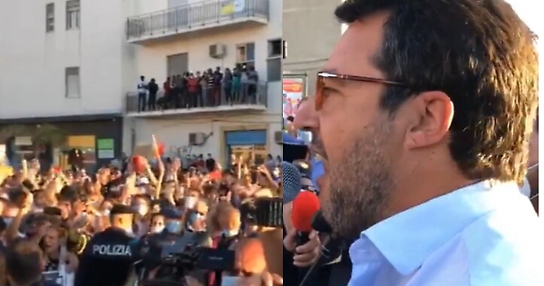 Salvini nel Messinese a migranti sul balcone: «Sicilia ha bisogno di turisti paganti, non di voi»