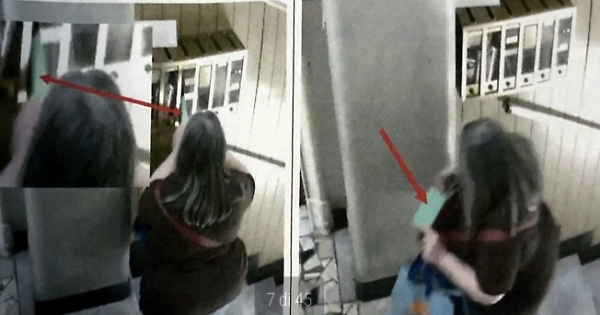 I poliziotti installano delle telecamere nascoste che incastrano il responsabile. Anzi: la responsabile. Infatti gli investigatori scoprono che con cadenza quasi quotidiana la segretaria di un noto studio legale dello stesso palazzo prelevava la corrispondenza professionale di Platania. I video immortalano (un frame nella foto sotto) la signora che si impossessa della posta dell’avvocato per ben tre volte in tre diversi giorni.